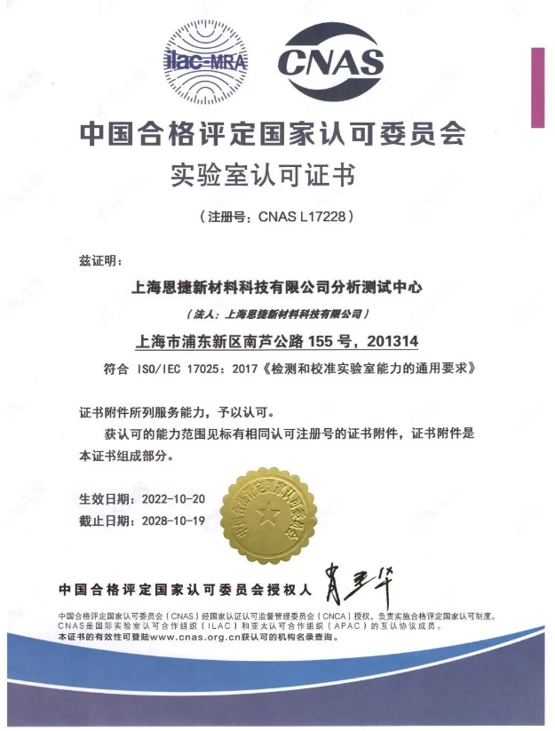 近日,上海恩捷分析測試中心通過中國合格評定國家認可委員會(簡稱:CNAS)的認可,成功躋身國家認可實驗室行列。