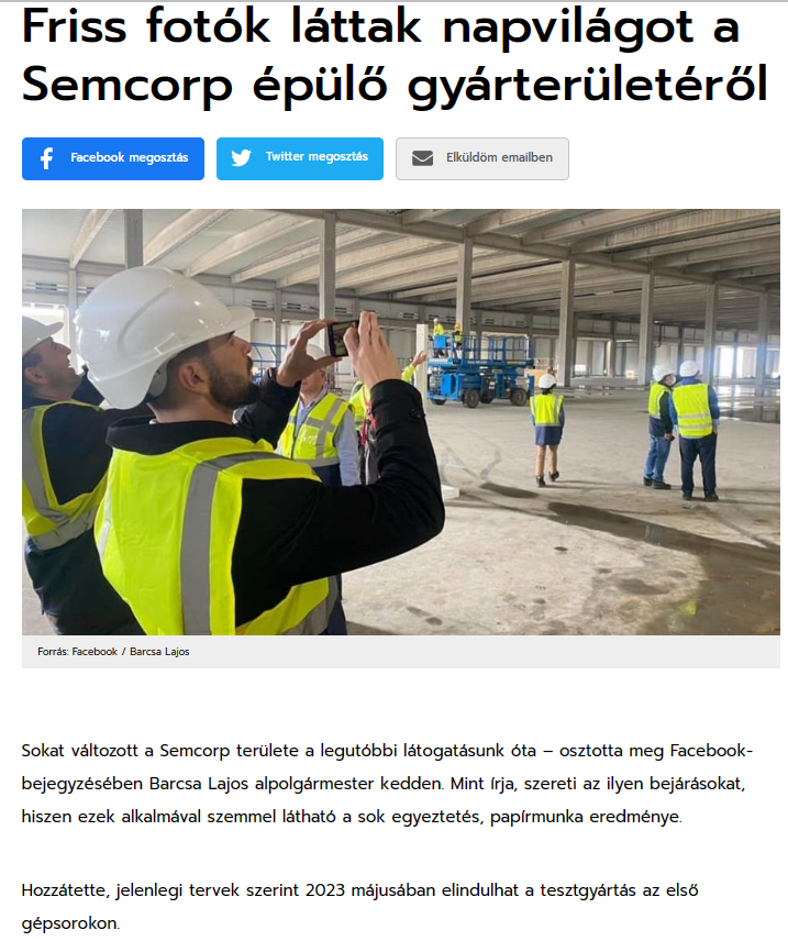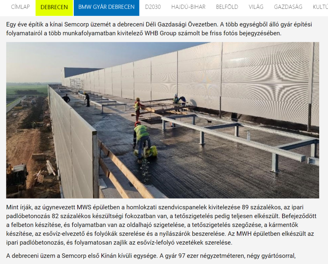 與此同時,匈牙利本地媒體也對匈牙利恩捷一期工廠的最新動態(tài)予以報道。