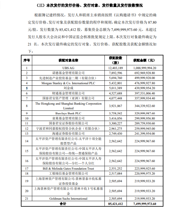 近日,恩捷股份定增落地,以87.8元/股的價格發(fā)行8542.14萬股,成功募集資金75億元。在此次定增中,諾德基金、UBS AG、先進制造產(chǎn)業(yè)投資基金等來自公募基金、境外投資機構(gòu)和國家級產(chǎn)業(yè)基金等21家投資者獲得配售,彰顯了投資者對于恩捷股份投資回報、未來發(fā)展成長性的堅定信心以及對于新能源產(chǎn)業(yè)和儲能行業(yè)領(lǐng)域市場發(fā)展前景的持續(xù)看好,也意味著公司在全球行業(yè)內(nèi)的綜合實力獲得了充分認(rèn)可。