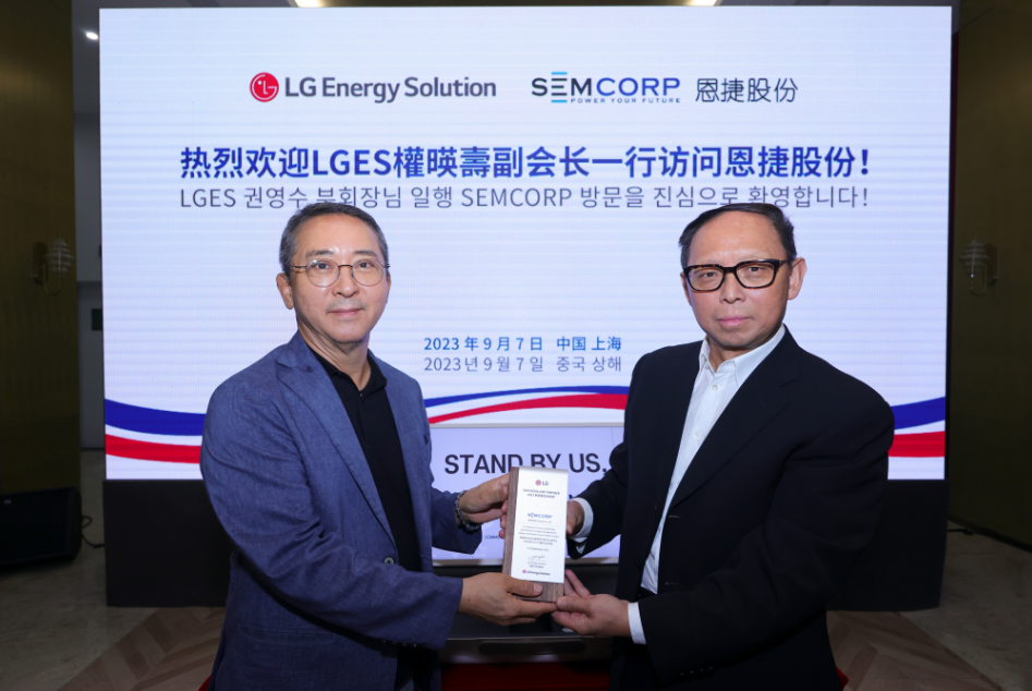 對(duì)韓國(guó)LGES副會(huì)長(zhǎng)權(quán)暎壽(中)的來(lái)訪表示歡迎