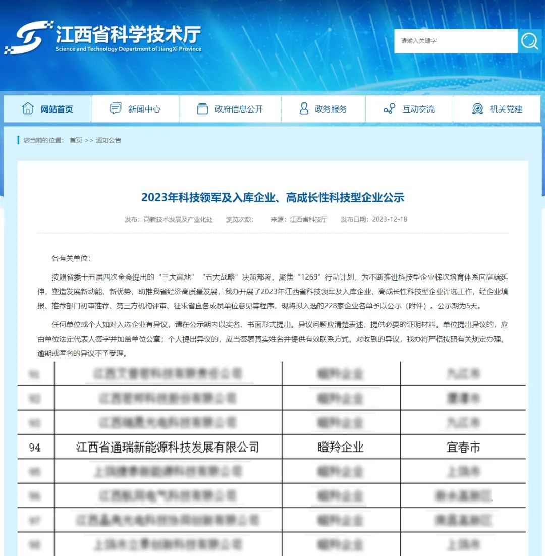 近期,江西省科學技術廳發(fā)布2023年科技領軍及入庫企業(yè)、高成長性科技型企業(yè)評估結果。恩捷股份旗下江西省通瑞新能源科技發(fā)展有限公司(簡稱“江西通瑞”)榮獲江西省“瞪羚企業(yè)”稱號。