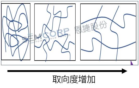 高強(qiáng)度調(diào)控示意圖(取向度越高隔膜強(qiáng)度越大)