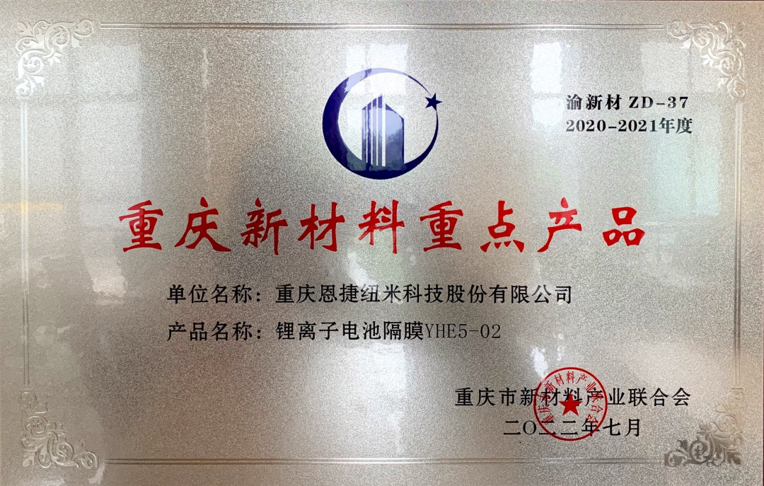 7月15日,重慶市新材料產(chǎn)業(yè)聯(lián)合會第二屆第四次會員大會暨第八次理事會順利開展。會上,重慶紐米科技獲得由重慶市新材料產(chǎn)業(yè)聯(lián)合會頒發(fā)的2020-2021年度“重慶新材料研發(fā)制造先進企業(yè)”榮譽獎項,其“鋰離子電池隔膜YHE5-02”產(chǎn)品獲得了2020-2021年度“重慶新材料重點產(chǎn)品”獎項。