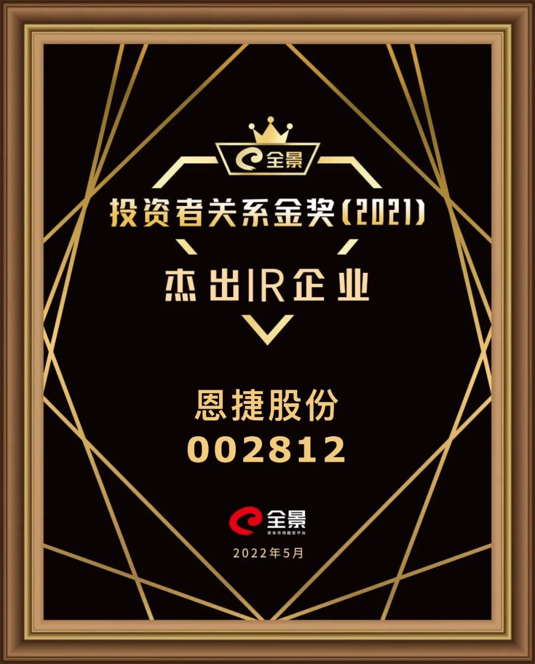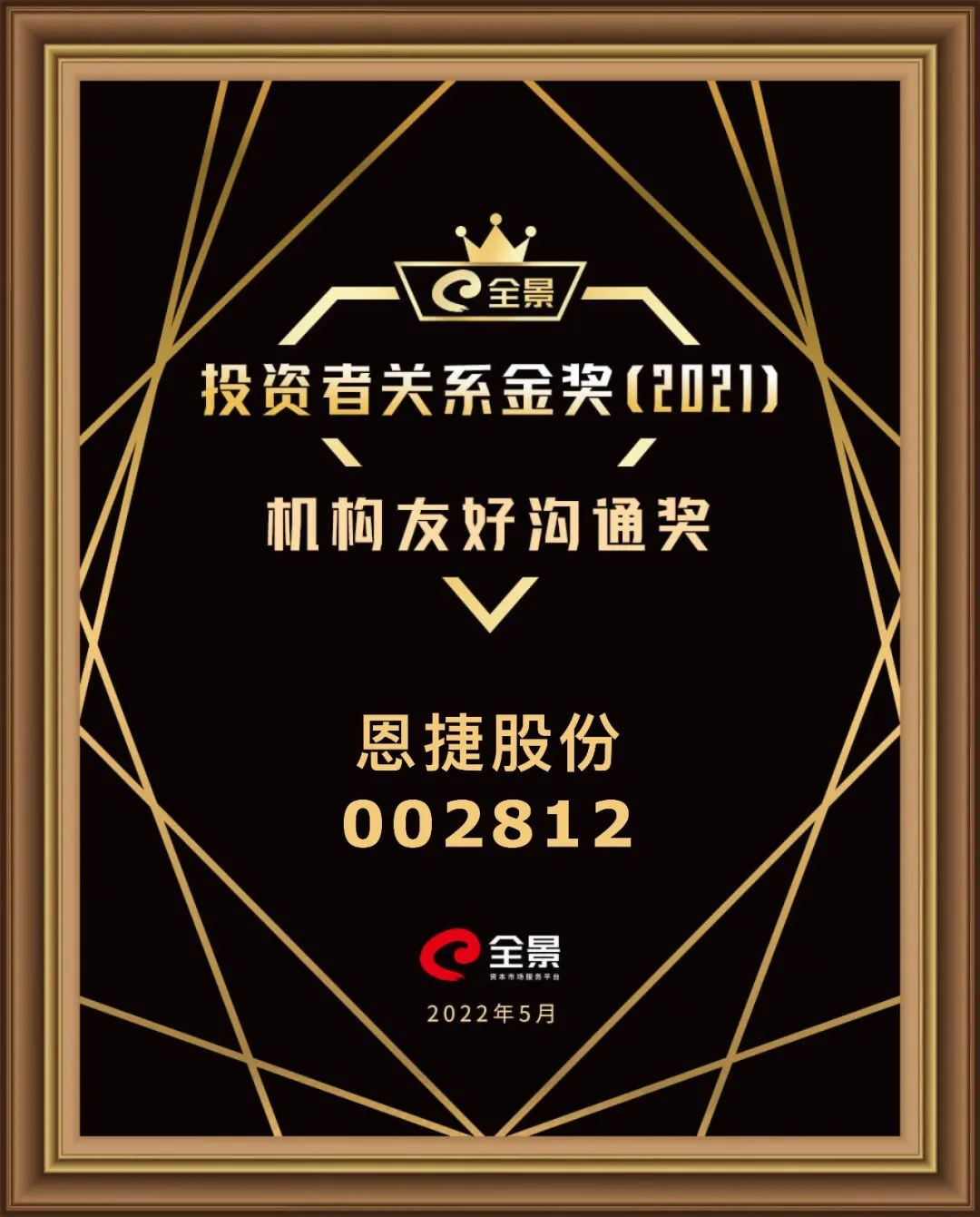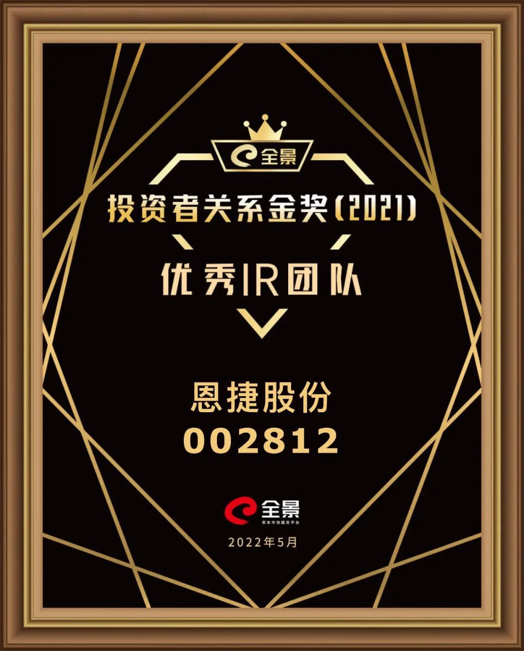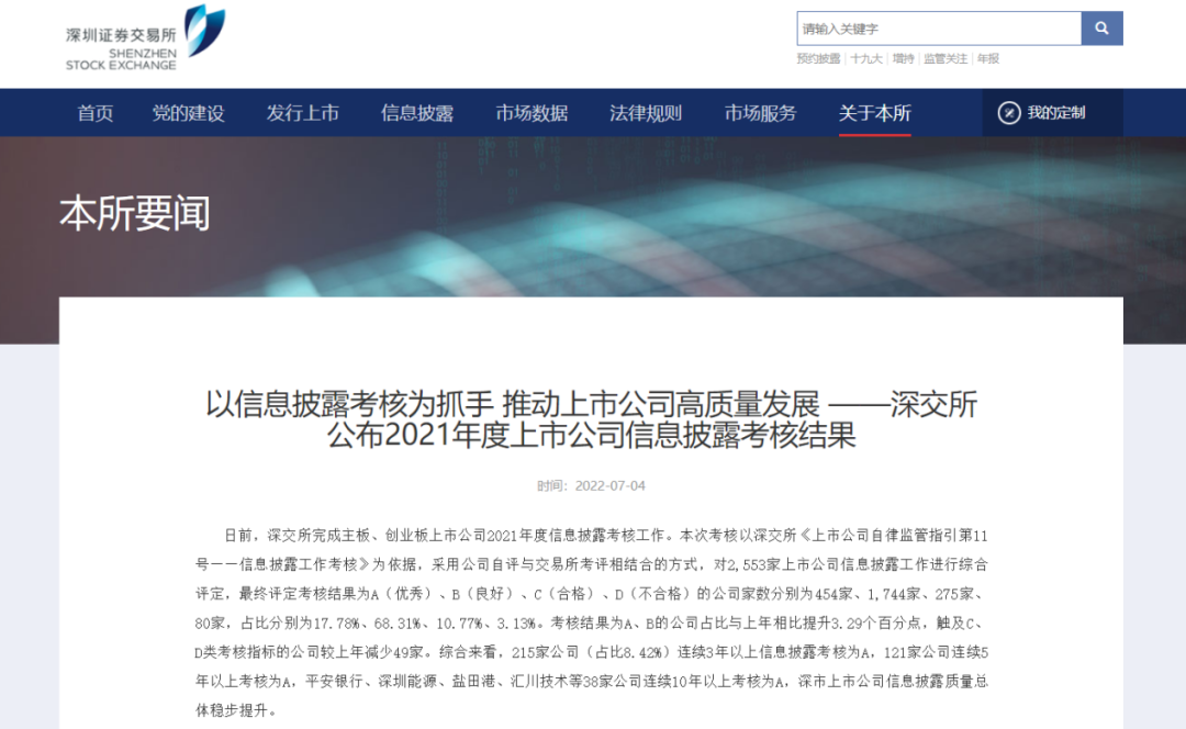 近日,深圳證券交易所公布了2021年度主板、創(chuàng)業(yè)板上市公司信息披露考核結果。恩捷股份(002812.SZ)獲深交所2021年度信息披露工作最高考核評級“A”。