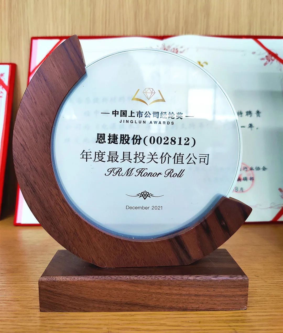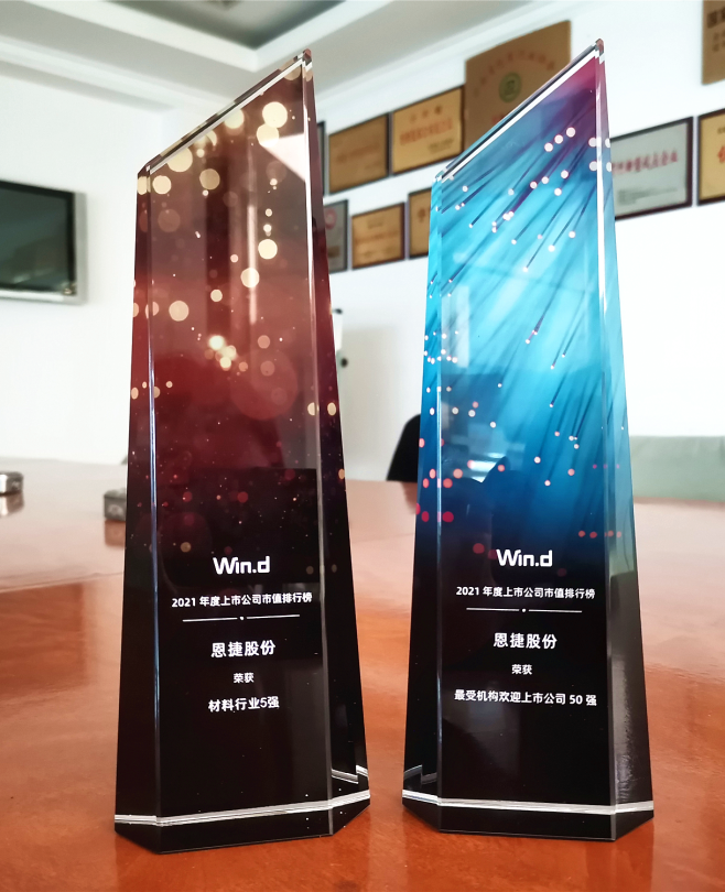 同時,公司積極與各類投資者溝通,榮獲“全景投資者關系金獎(2021)”之“機構友好溝通獎”、“優(yōu)秀IR團隊”、“杰出IR企業(yè)”三大獎項;Win.d“2021年度上市公司市值排行榜材料行業(yè)5強”和“最受機構歡迎上市公司50強”;2021中國上市公司經(jīng)綸獎之“年度最具投關價值公司”等多項榮譽。