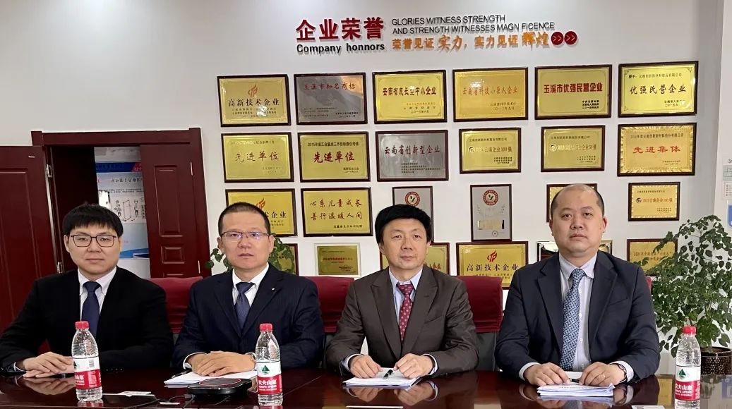 從左到右順序是:保薦代表人劉純欽、董事長助理龐啟智、恩捷股份副董事長李曉華、保薦代表人王家驥